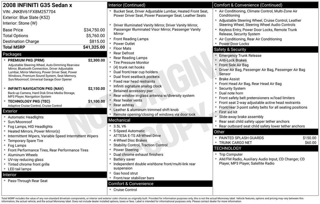 2008 INFINITI G35 Sedan x