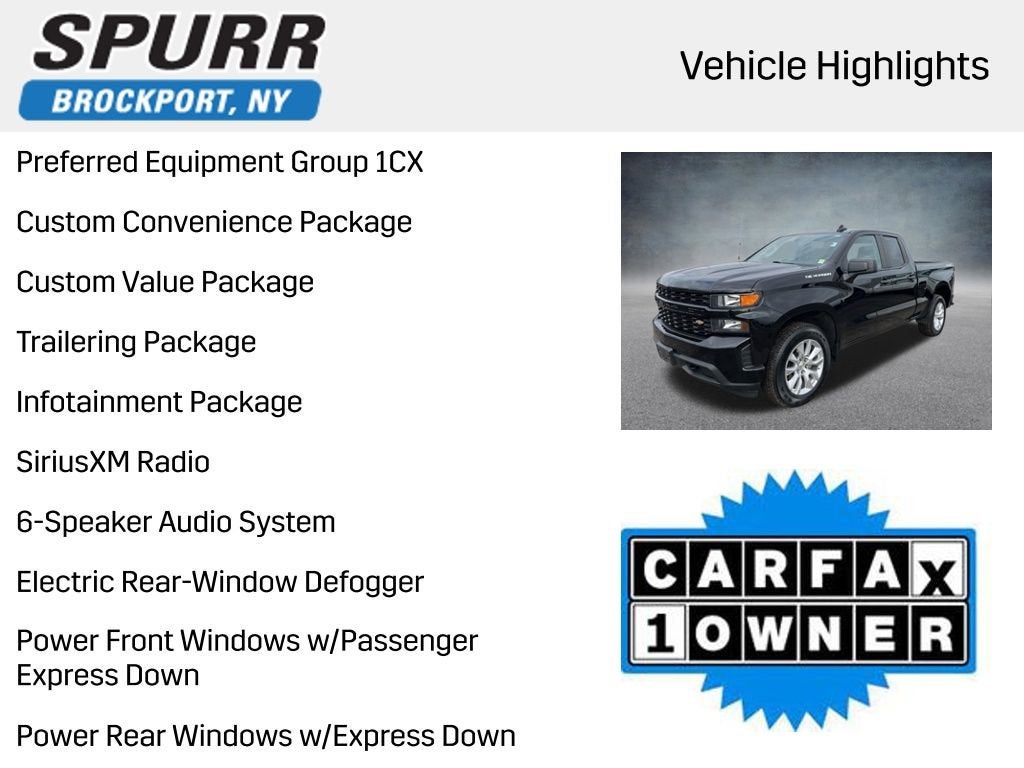 3.5 Monochromatic Display Driver Info Center, 40/20/40 Front Split Bench Seat, 6-Speaker Audio System, Bluetooth® For Phone, Body Color Grille, Brake assist, Chevrolet Connected Access Capable, Color-Keyed Carpeting Floor Covering, Compass, Custom Convenience Package, Custom Value Package, Deep-Tinted Glass, Delay-off headlights, Electric Rear-Window Defogger, Electronic Cruise Control, EZ Lift Power Lock & Release Tailgate, Front Center Armrest w/Storage, Front Frame-Mounted Black Recovery Hooks, Front Rubberized Vinyl Floor Mats, Fully automatic headlights, Heavy Duty Suspension, Hitch Guidance, Infotainment Package, LED Cargo Area Lighting, Manual Tilt Wheel Steering Column, OnStar & Chevrolet Connected Services Capable, Power Door Locks, Power Front Windows w/Driver Express Up/Down, Power Front Windows w/Passenger Express Down, Power Rear Windows w/Express Down, Preferred Equipment Group 1CX, Rear 60/40 Folding Bench Seat (Folds Up), Rear Rubberized-Vinyl Floor Mats, Rear step bumper, Remote Keyless Entry, Remote Vehicle Starter System, SiriusXM Radio, Standard Tailgate, Theft Deterrent System (Unauthorized Entry), Trailering Package, Wi-Fi Hot Spot Capable.Black 2022 Chevrolet Silverado 1500 LTD Custom 4WD 2.7L Turbo 8-Speed AutomaticPlease reach out to us at: 585-637-3999 to see how we will provide a SPURR-tacular purchase and ownership experience!