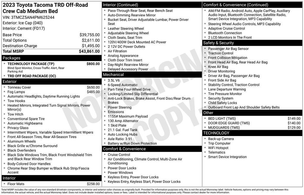 Ice 2023 Toyota Tacoma TRD Off-Road V6 4WD 3.5L V6 6-Speed Automatic