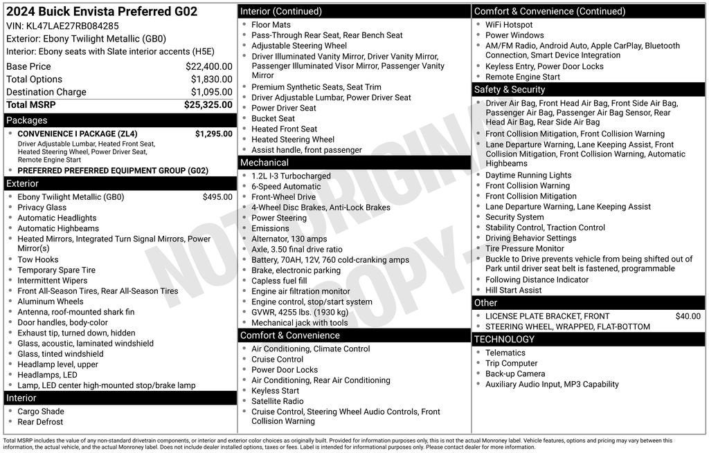 Ebony Twilight Metallic 2024 Buick Envista Preferred FWD ECOTEC 1.2L Turbo 6-Speed Automatic