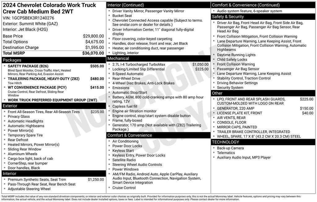 Summit White 2024 Chevrolet Colorado Work Truck RWD 2.7L I4 Turbocharged DOHC 16V LEV3-ULEV50 237hp 8-Speed Automatic